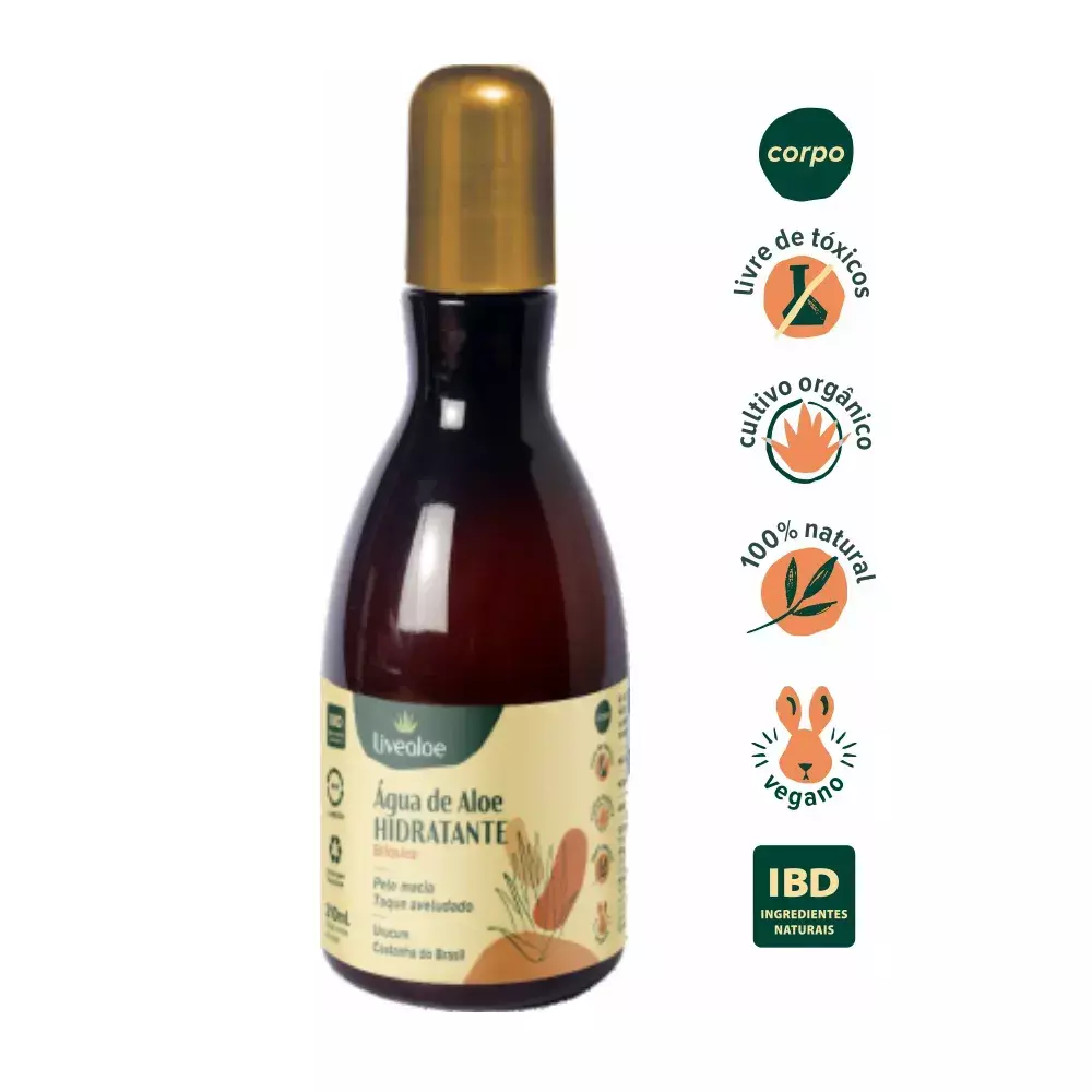 Agite antes de usar. Com a pele ainda úmida após o banho, aplique a Água de Aloe por todo o corpo, massageando suavemente. Deixe secar naturalmente. Uso diário.