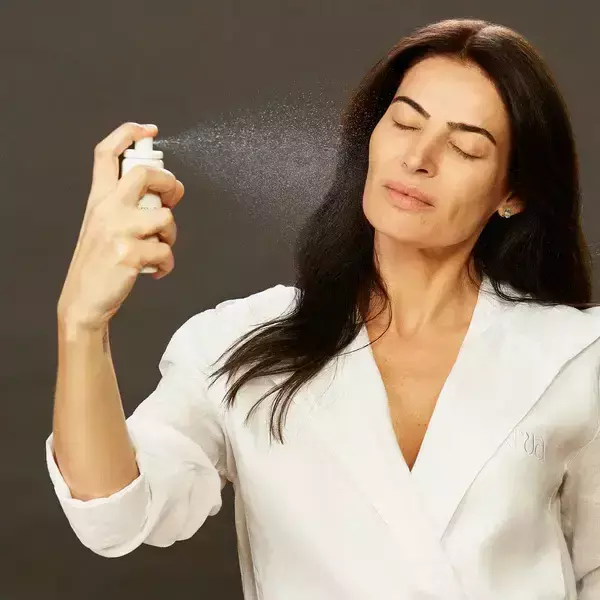 - Se preferir, agite o frasco e mantenha uma distância de 30cm do rosto para borrifar diretamente na pele. Depois, use o algodão para fazer o arraste das sujidades.