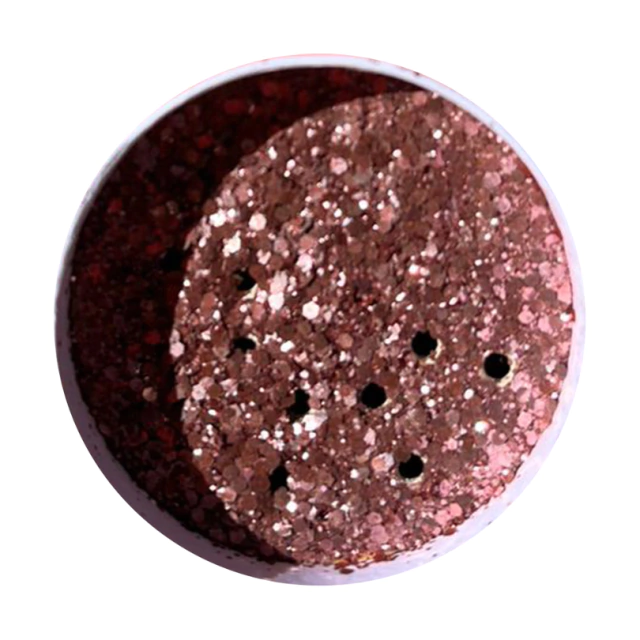 A base do nosso bioglitter é vinda de fontes renováveis com 72% de celulose. O restante dele é composto por pigmentos, glicerina vegetal e uréia.