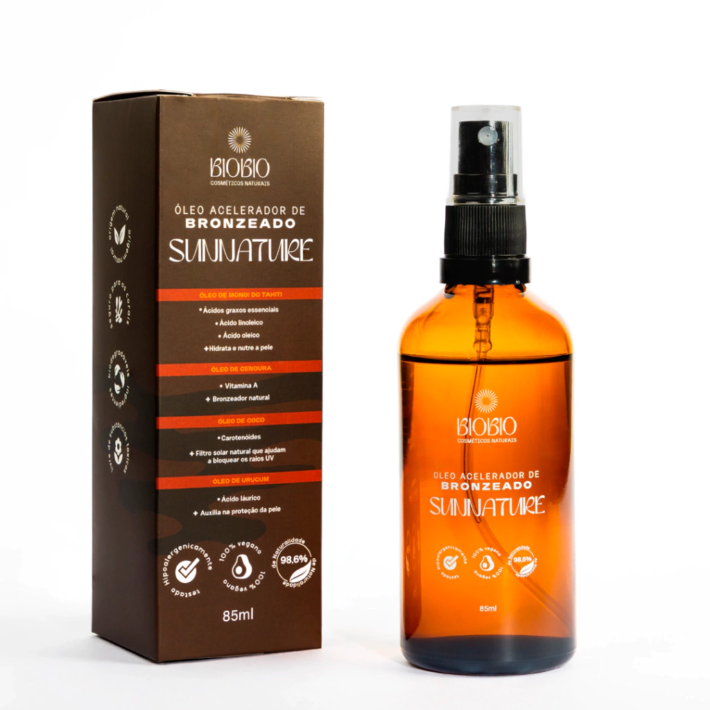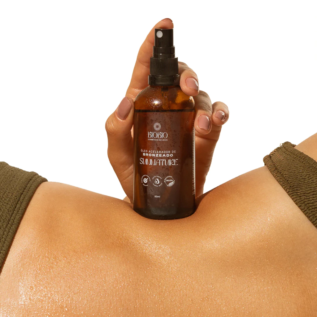 Marquinha de biquíni o ano todo, em menos de 30 minutos de sol ou até de mormaço! Acelere e potencialize seu bronze enquanto trata sua pele com potentes ativos naturais. Fórmula limpa, livre de toxinas, 98,6% natural e vegana.