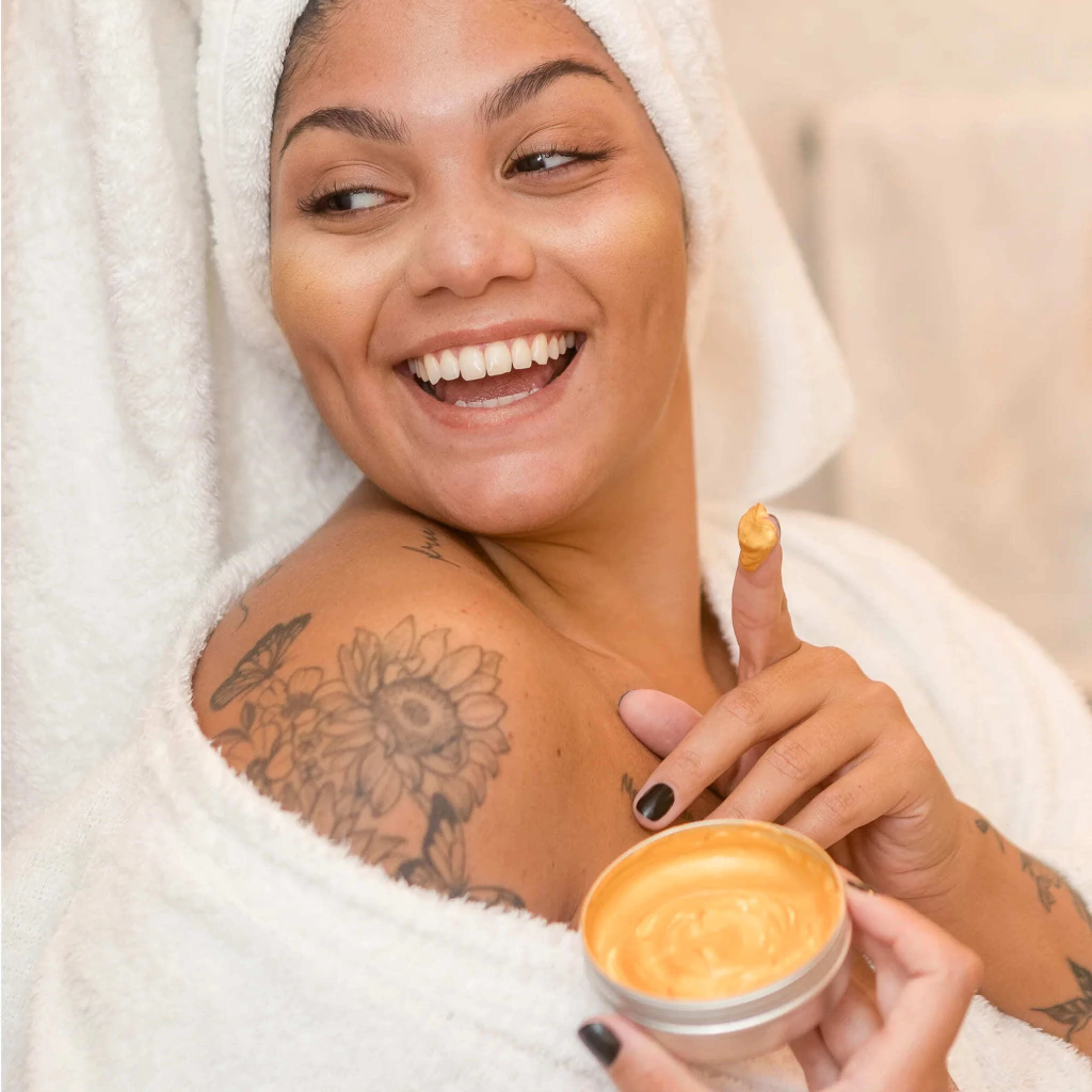 Ideal para rosto e corpo e todos os tipo de pele.