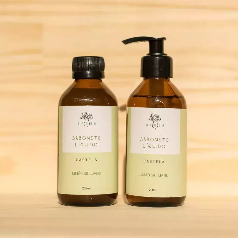 Sabonete Líquido Castela, base 100% azeite de oliva. É super hidratante e cremoso.